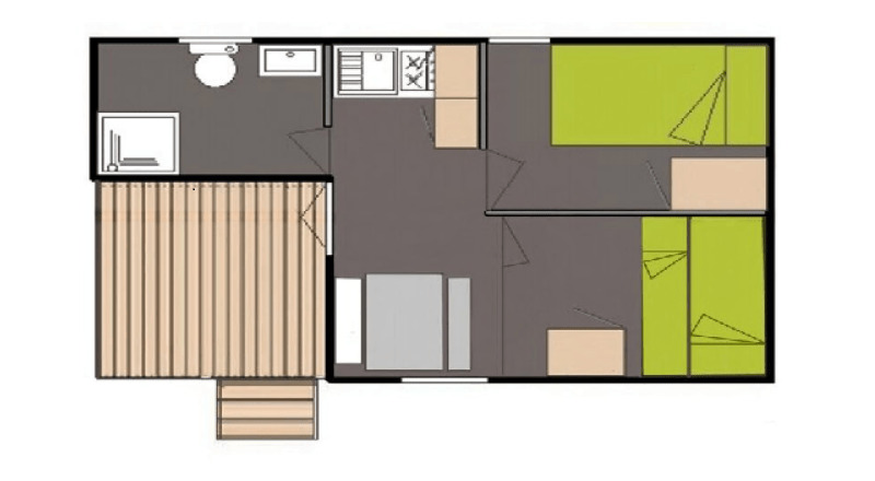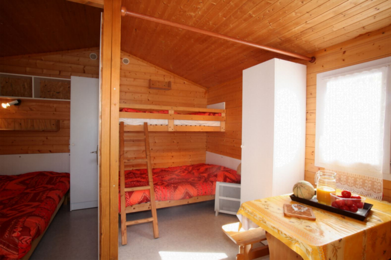 Coin nuit : une chambre avec 1 lit double (140×190), un coin couchage dans le séjour avec 1 lit (130×190) et 1 lit superposé (70×190) , oreillers et couettes fournis.
