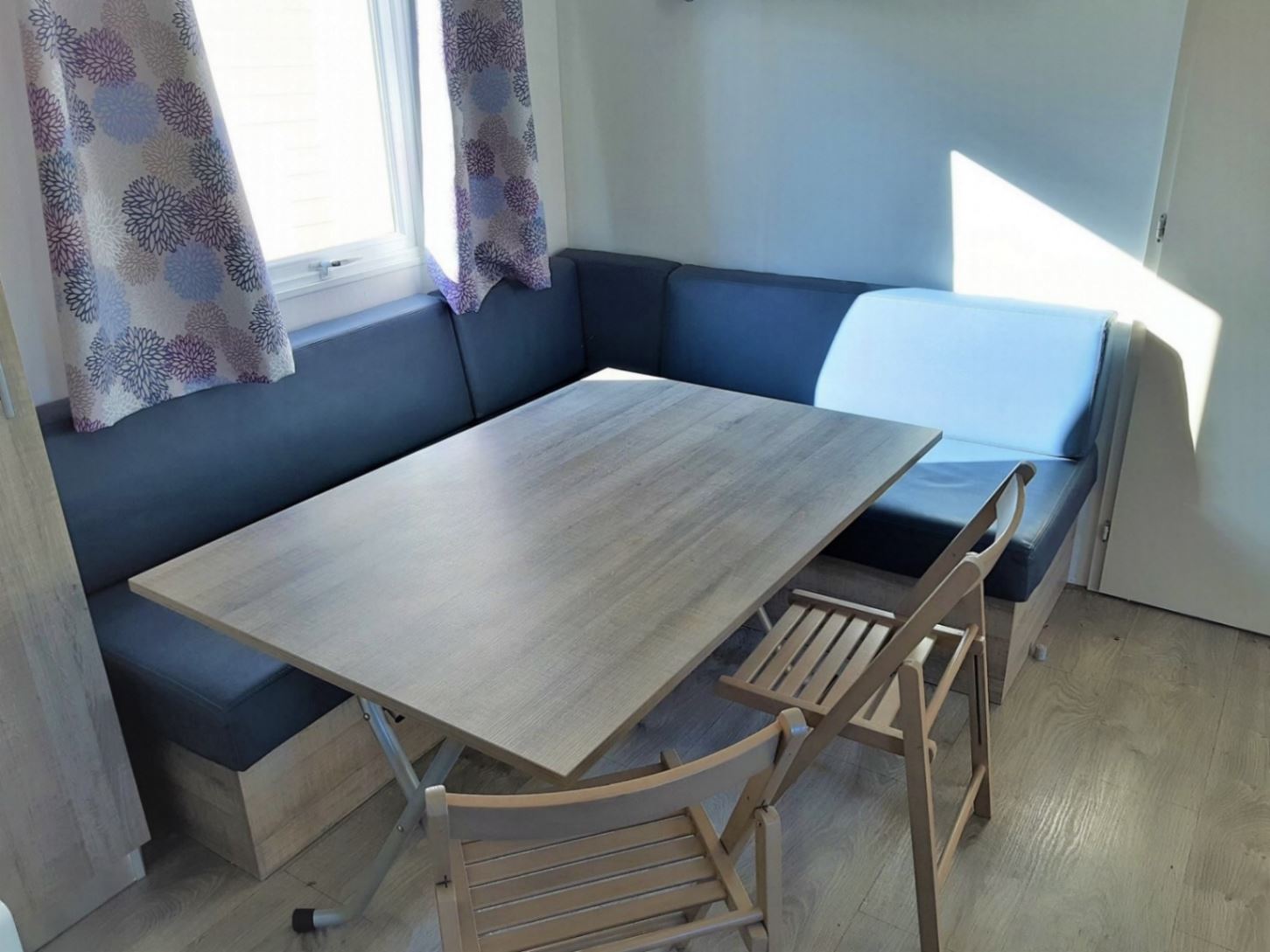 Coin salon/cuisine : cuisine équipée (évier, feux gaz, réfrigérateur-congélateur, cafetière, micro-onde, vaisselle), radiateur dans le séjour.
