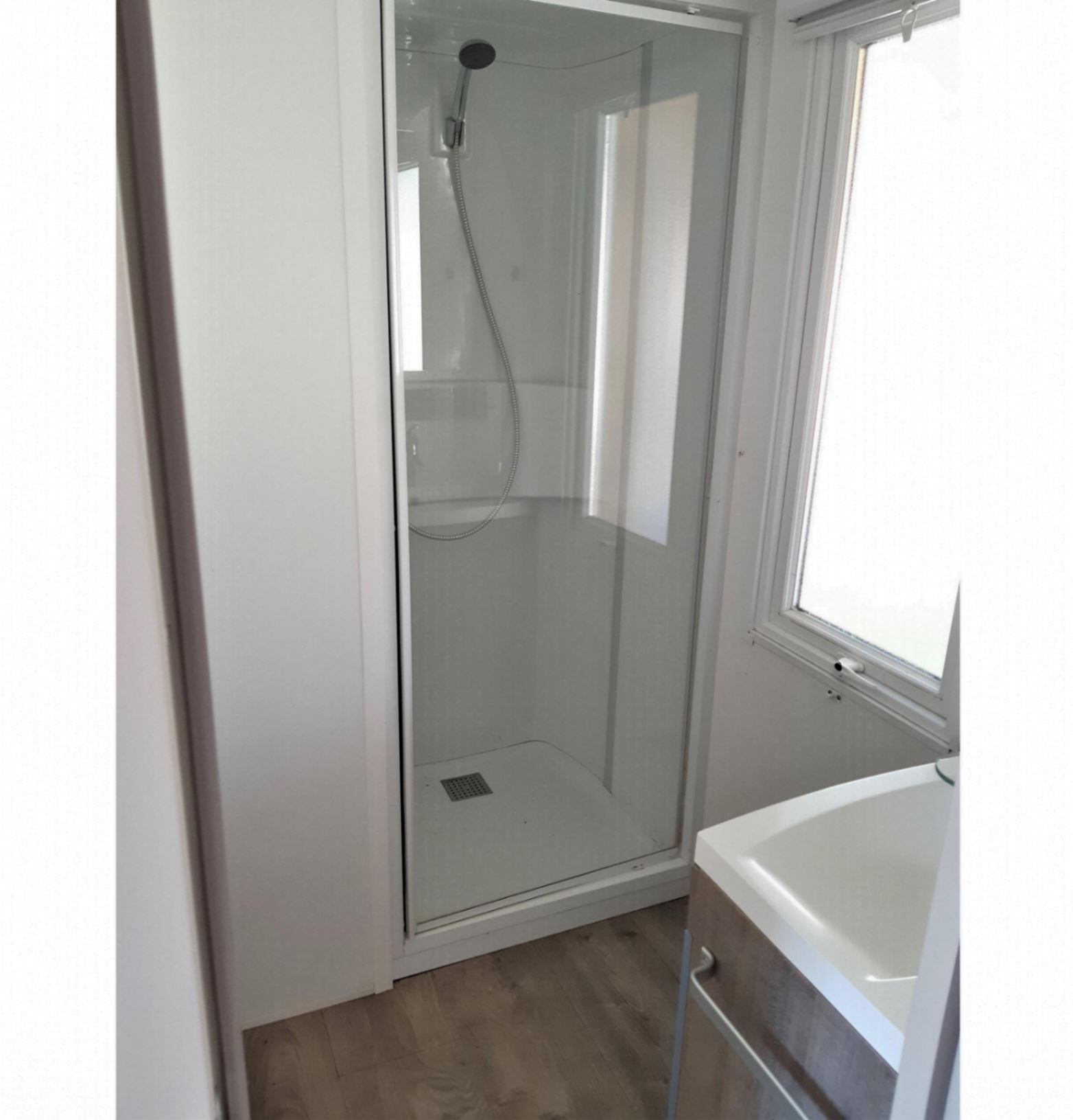 Sanitaire : salle d’eau avec douche, lavabo et WC séparés.
