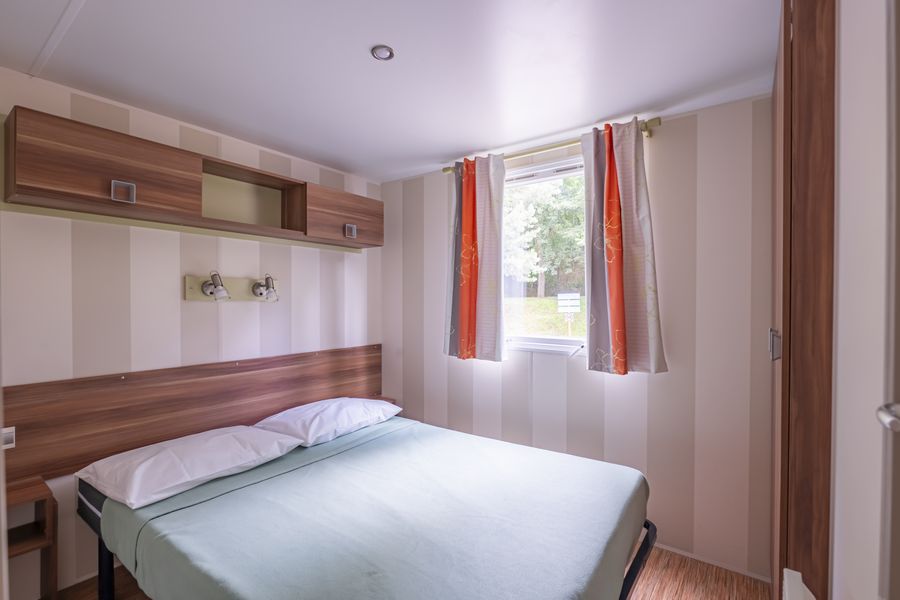 Coin nuit : une chambre avec 1 lit double (140×190), une chambre avec 2 lits simples (80×190) côte à côte, oreillers et couettes fournis.