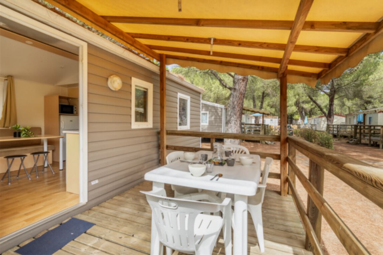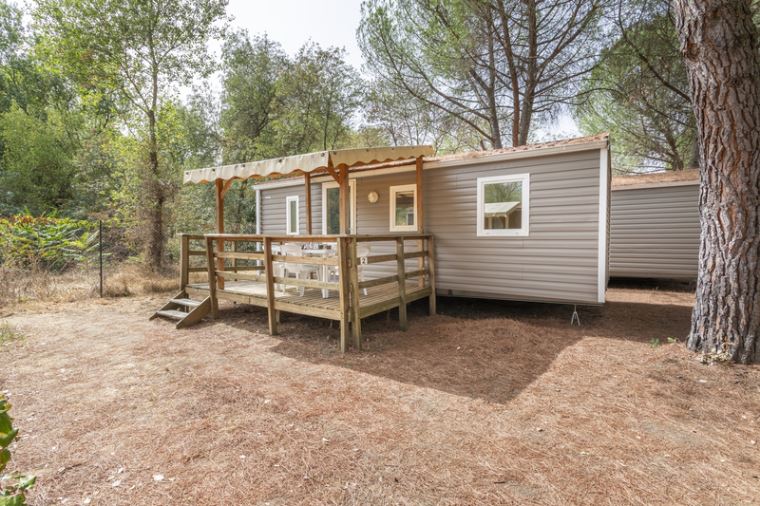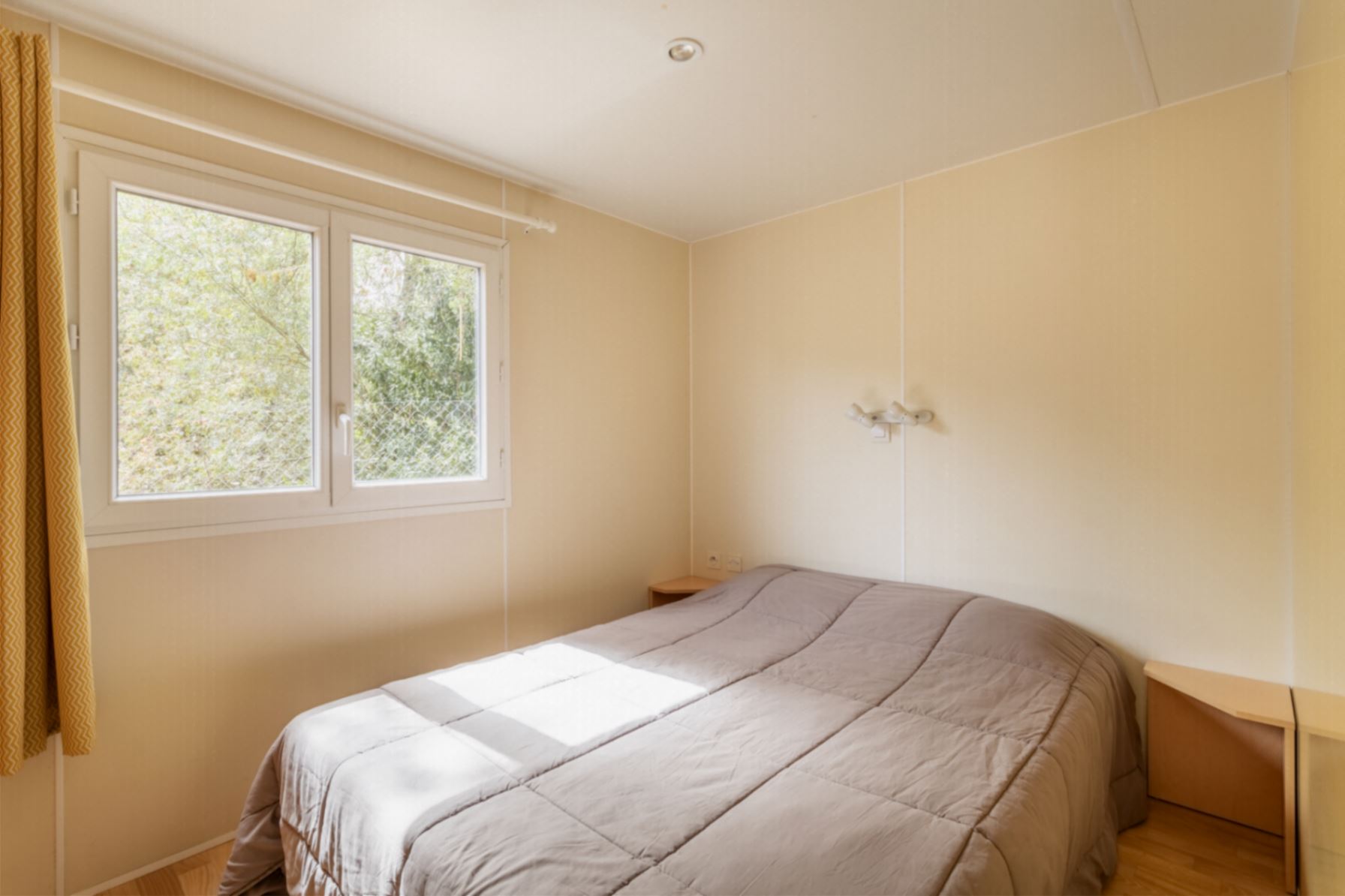 Coin nuit : une chambre avec 1 lit double (140X190), une chambre avec 2 lits simples (80×190) côte à côte ou superposés selon les modèles, oreillers et couettes fournis.