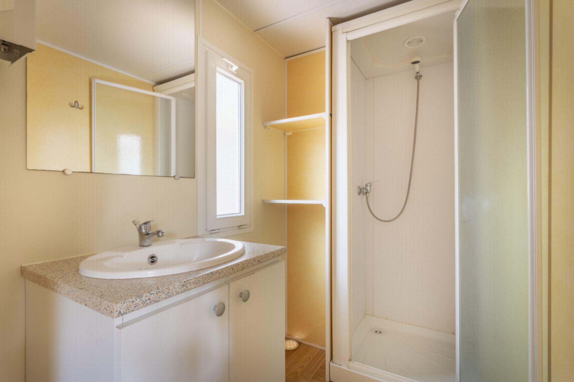 Sanitaire : salle d’eau avec douche, lavabo et WC séparés.