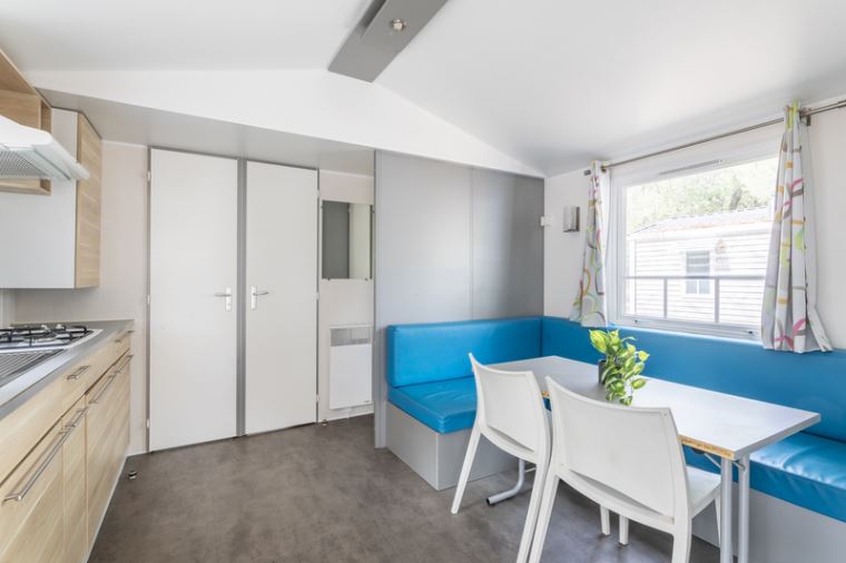 Sleeping area: one bedroom with 1 double bed (140X190), one bedroom with 2 single beds side by side, pillows and duvets provided.