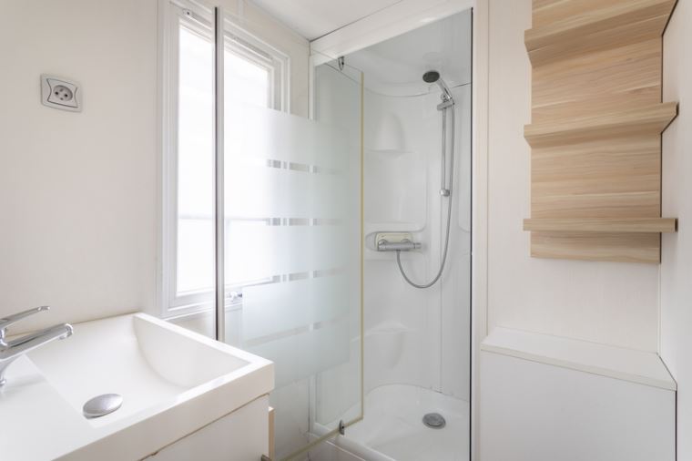Sanitary: bathroom with shower, sink and separate WC.
